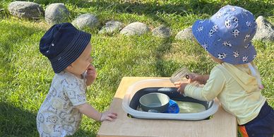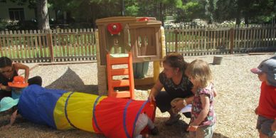 A lovely green-space with walking path is right behind our building, so infants take stroller rides and toddlers regularly take walks on the path as it winds through the small park.